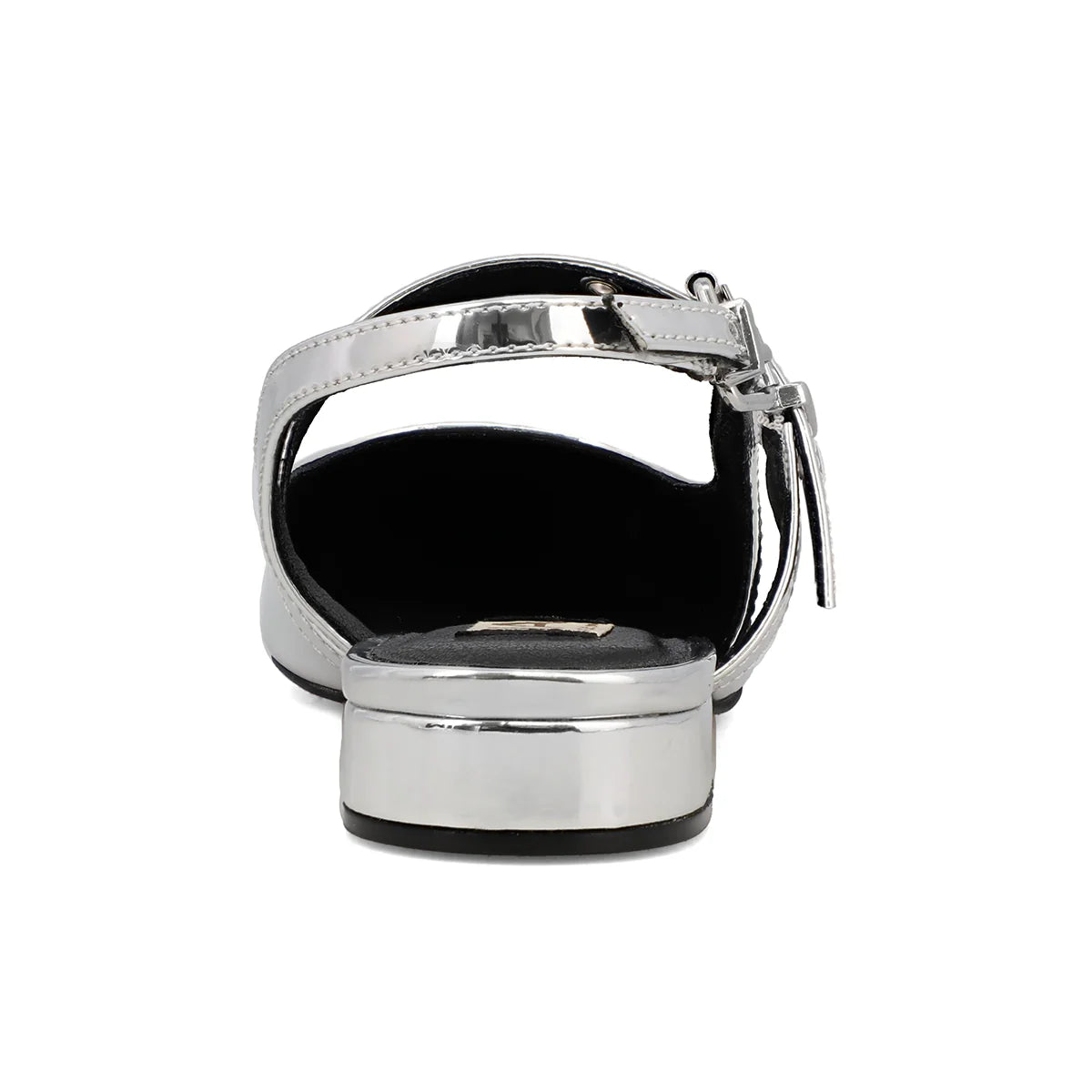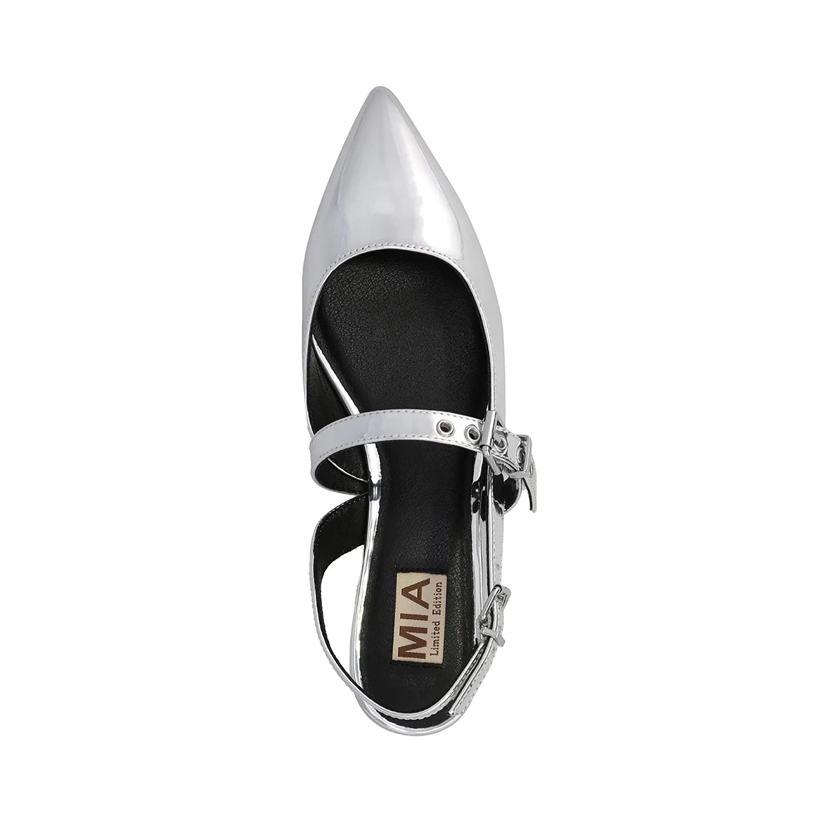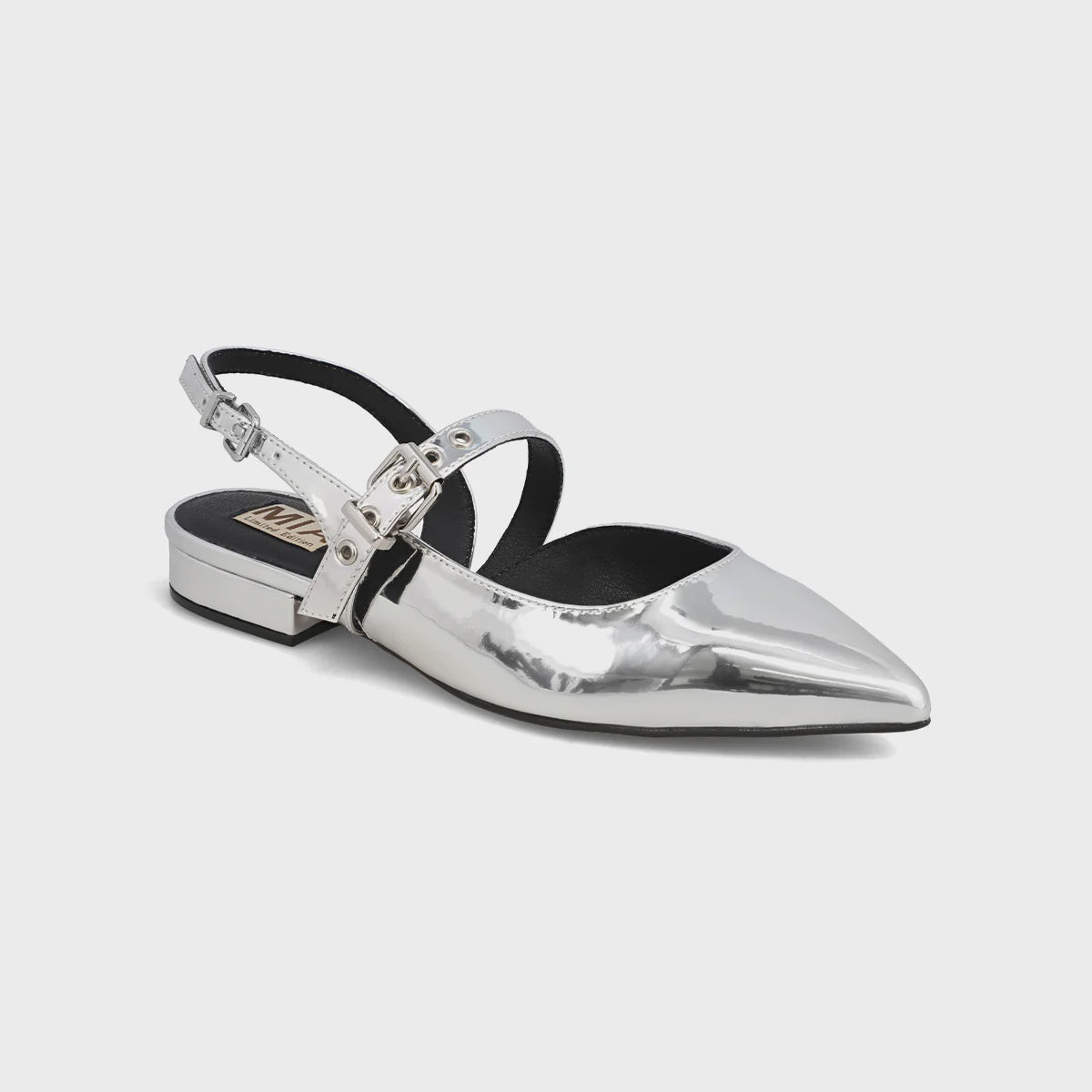 Stay on trend with this sleek yet sophisticated flat. Aree is crafted from patent material available in a fun metallic or basic fall hues. The almond toe adds a refined touch, while the slingback silhouette and delicate adjustable buckle offers a comfortable fit. Perfect for dressing up your work wear or adding polish to an evening look.